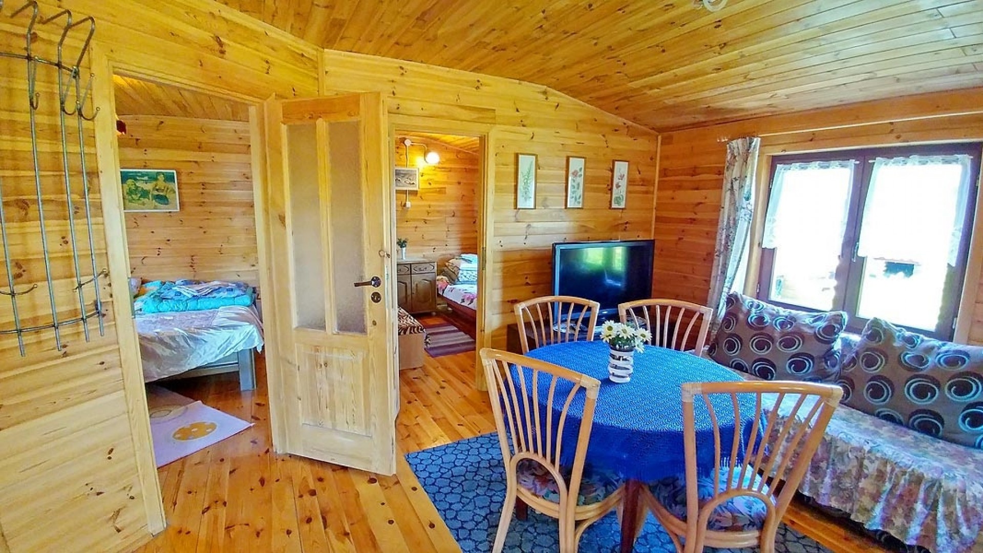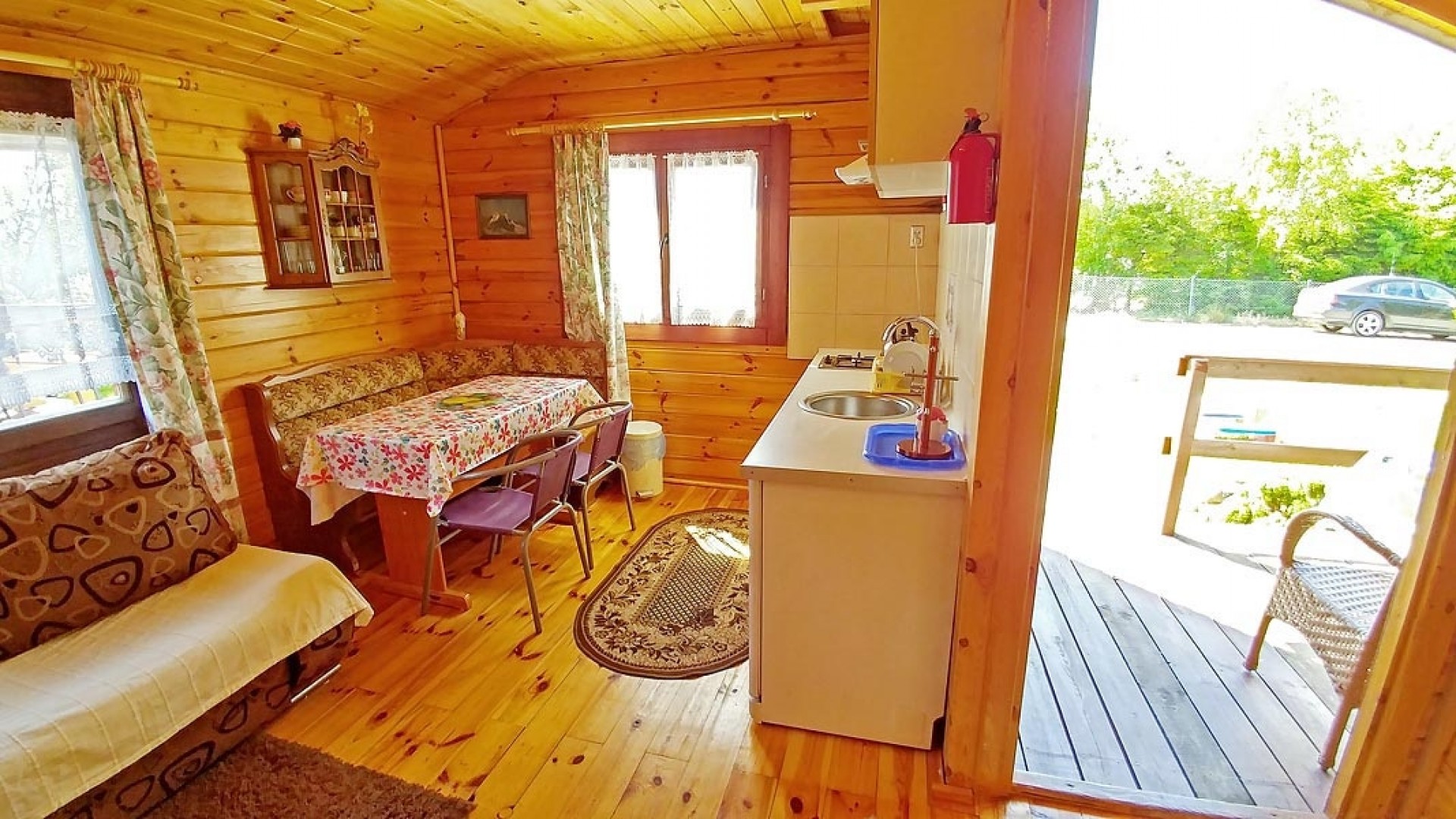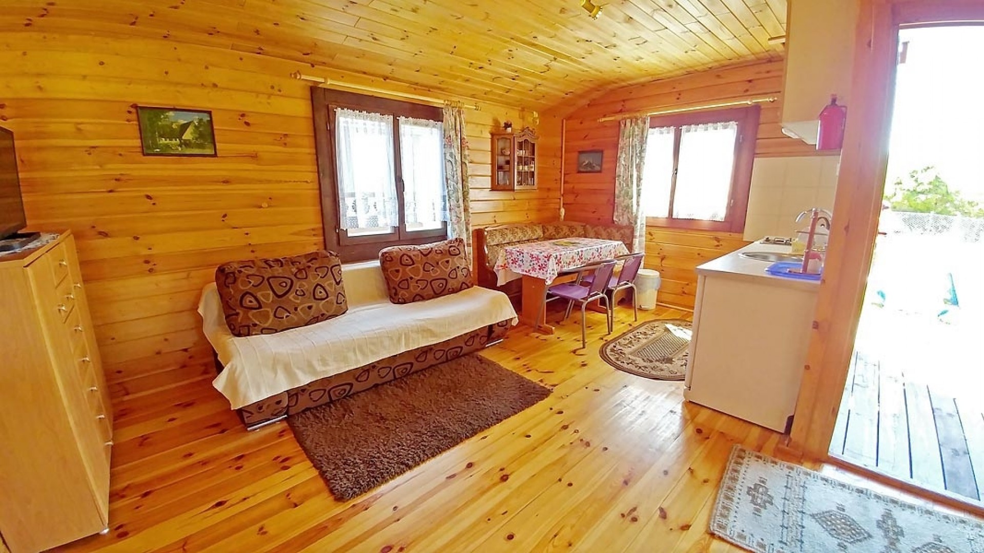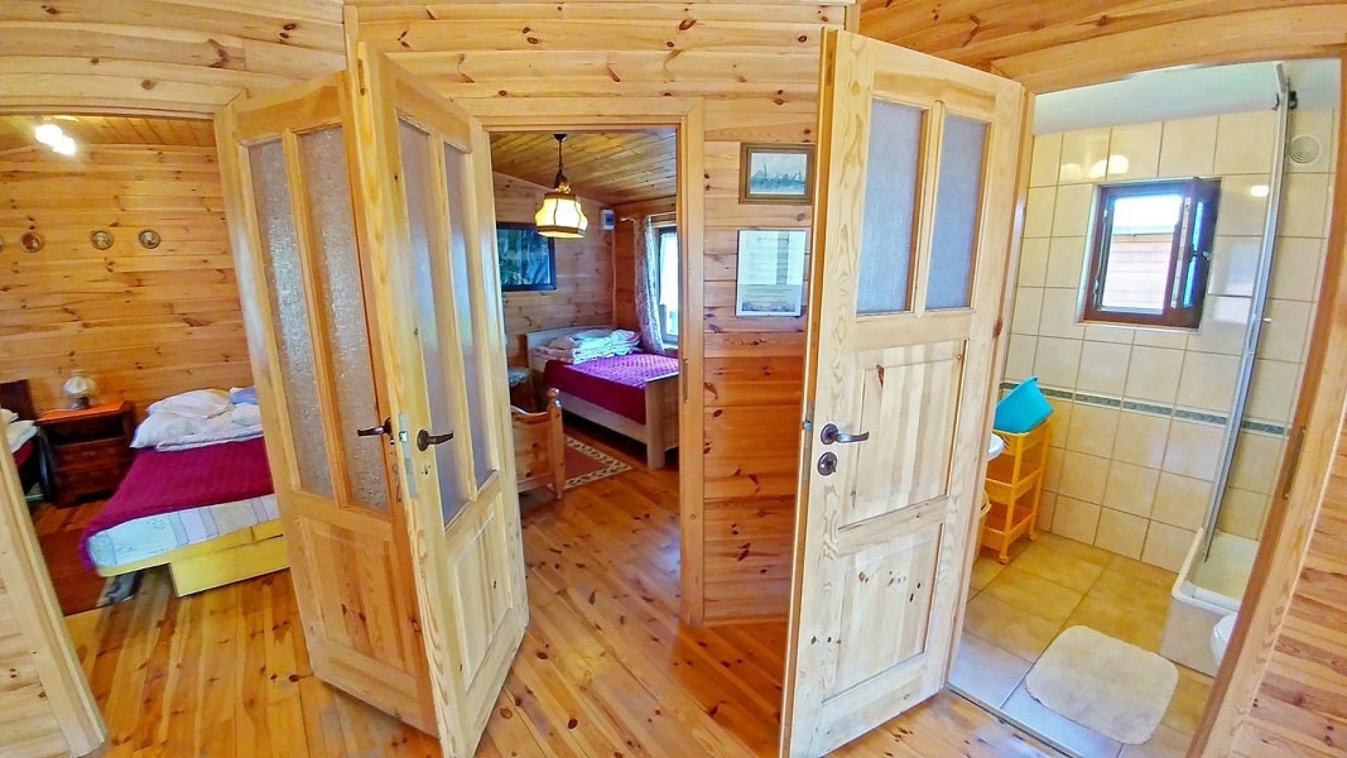 Posiadamy również domki letniskowe w pełni wyposażone - 2 sypialnie, duży salon, aneks kuchenny i łazienka.