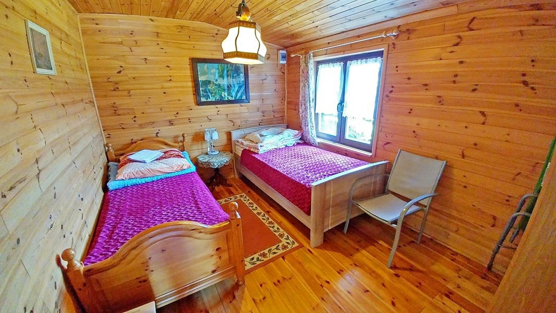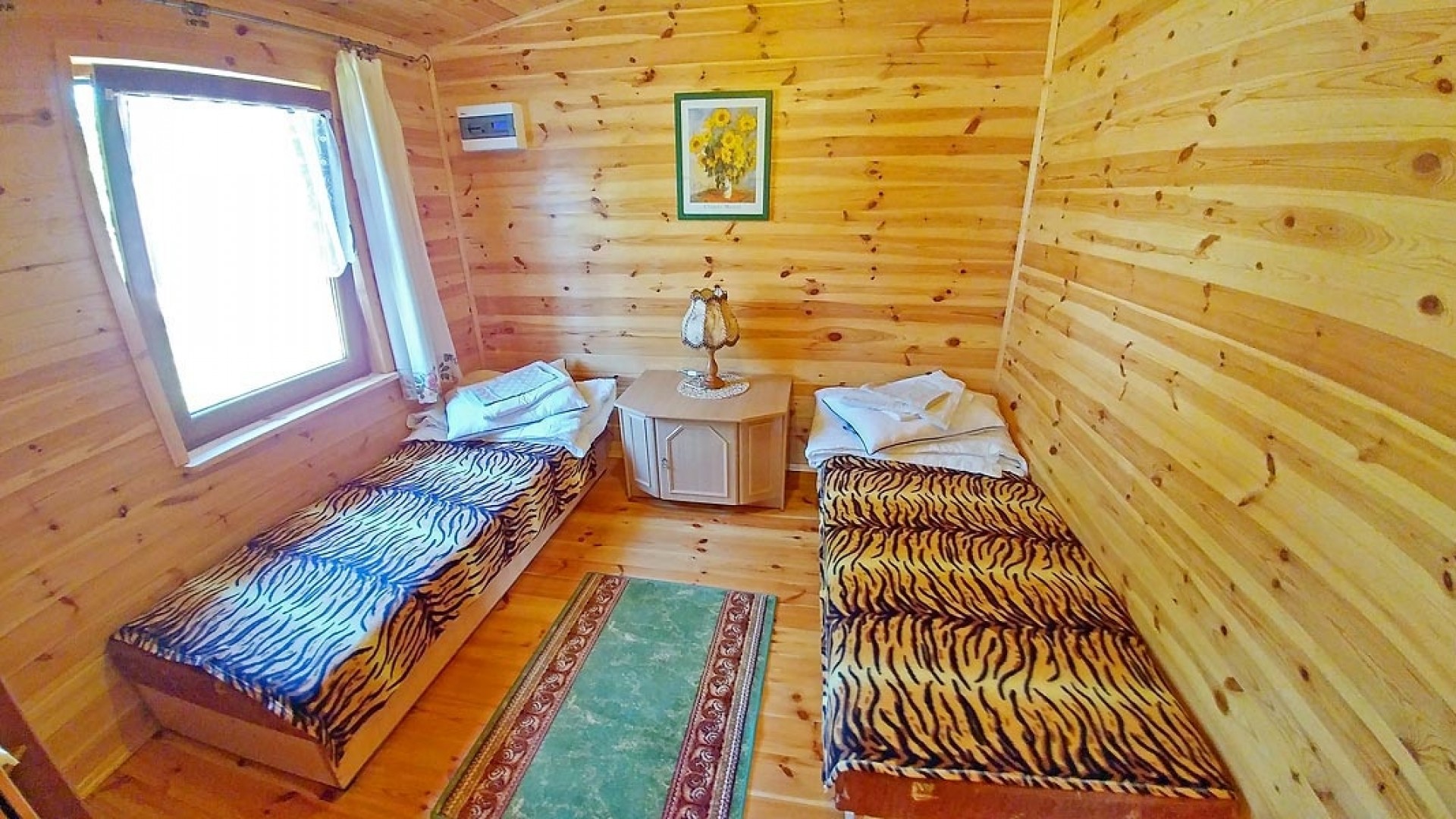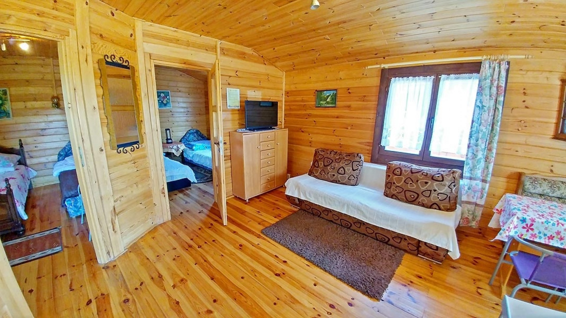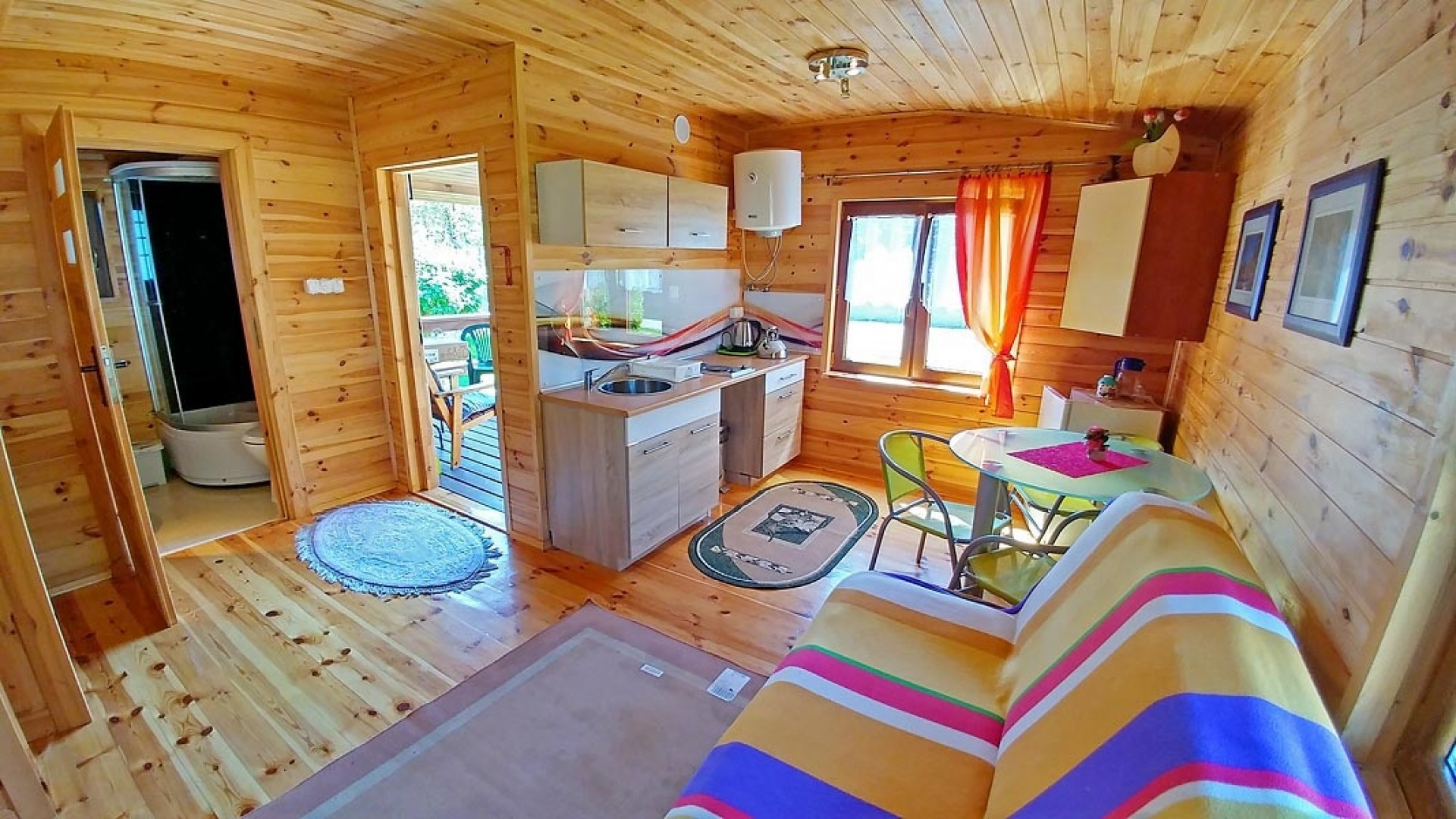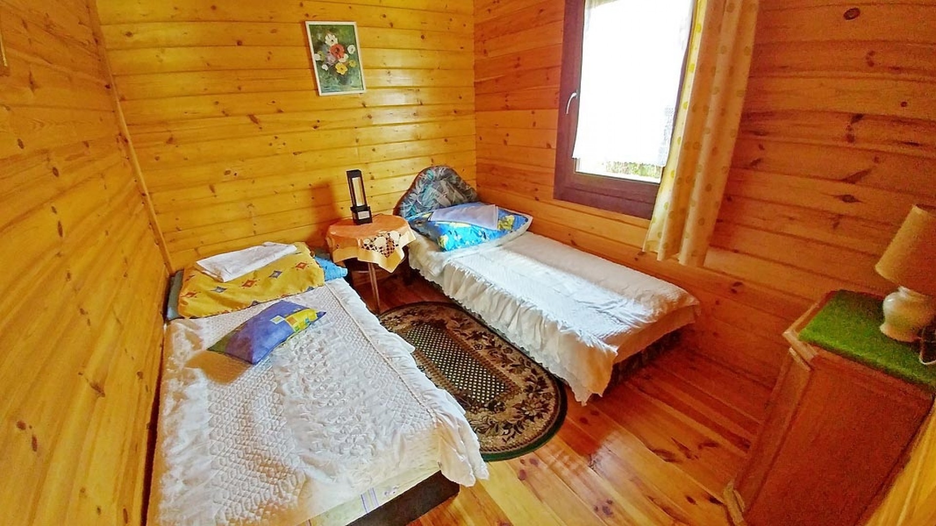 Posiadamy również domki letniskowe w pełni wyposażone - 2 sypialnie, duży salon, aneks kuchenny i łazienka.