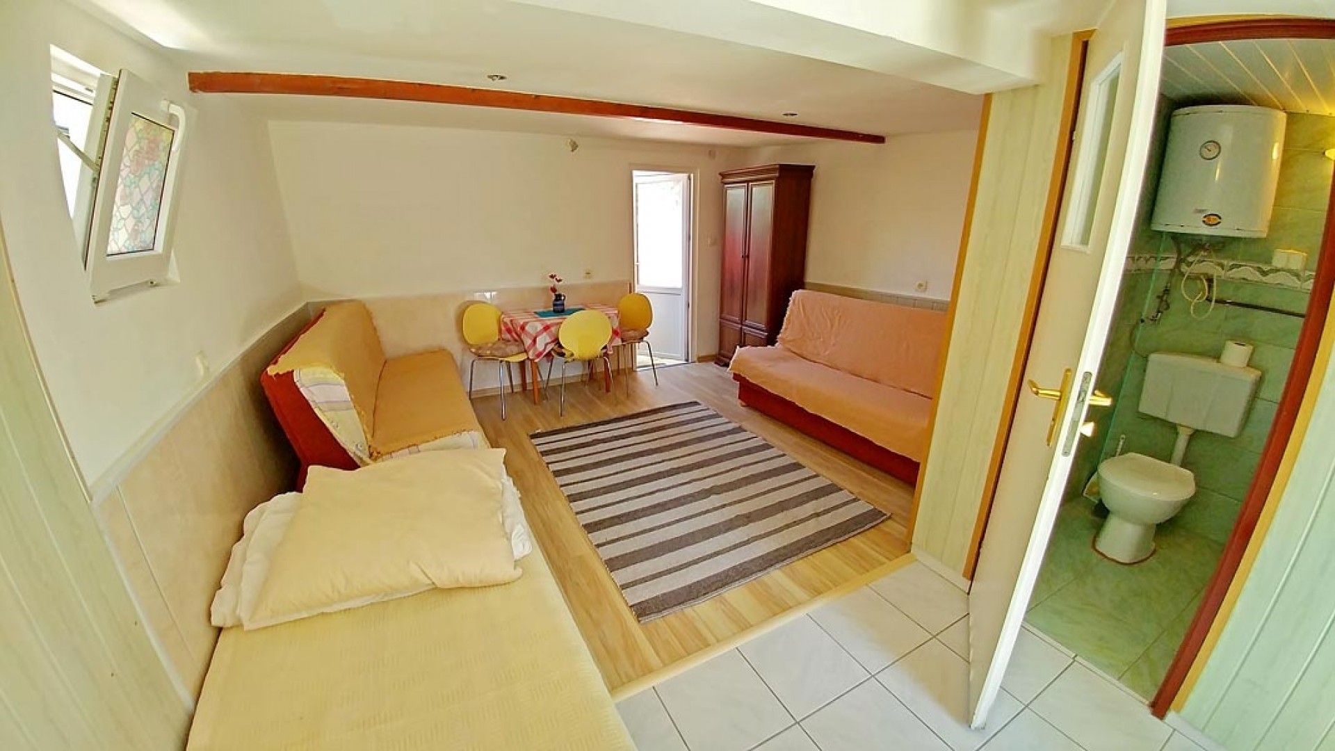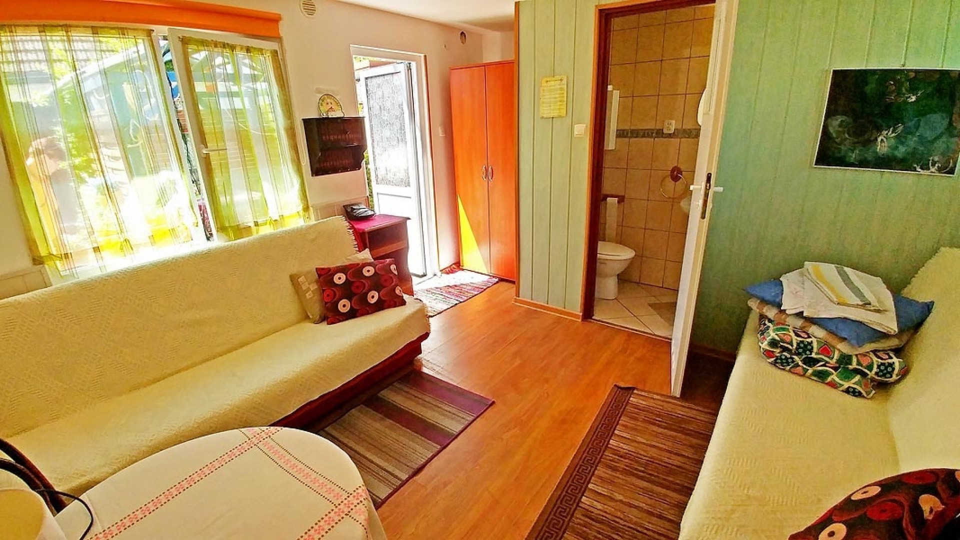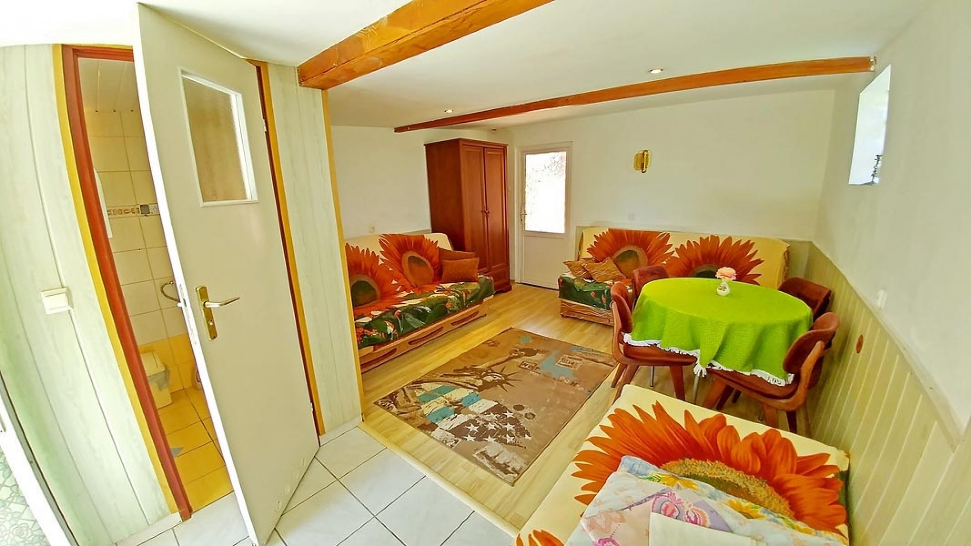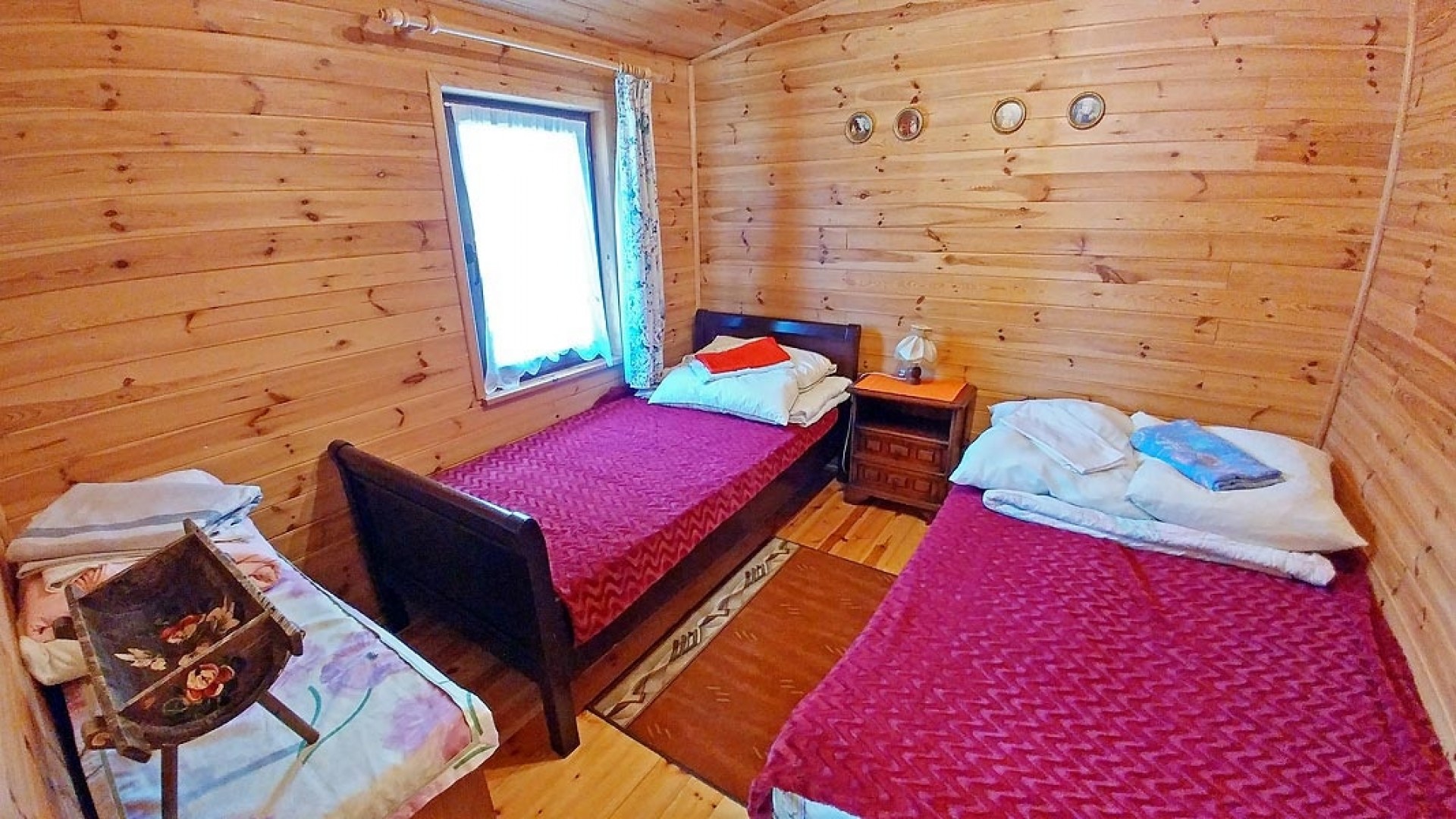 Posiadamy również domki letniskowe w pełni wyposażone - 2 sypialnie, duży salon, aneks kuchenny i łazienka.